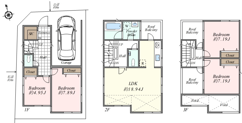☐建物面積/126.77㎡(38.34坪) ※車庫面積13.64㎡含む